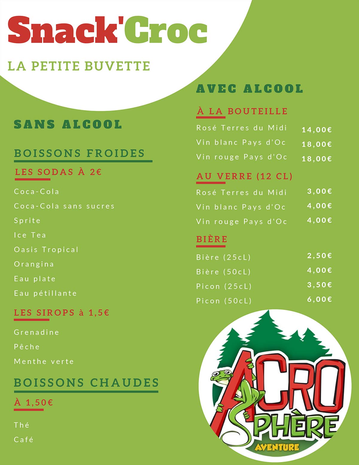 Le Snack’Croc vous accueille en vous proposant boissons fraîches et petite restauration.